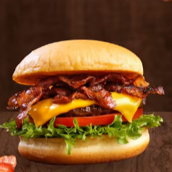 UM DOBLE CHEDDAR + UMA PORÇÃO DE FRITAS (KETCHUP, MAIONESE E CHEDDAR C/ BACON) + 6 COXINHAS + ANEIS DE CEBOLA.