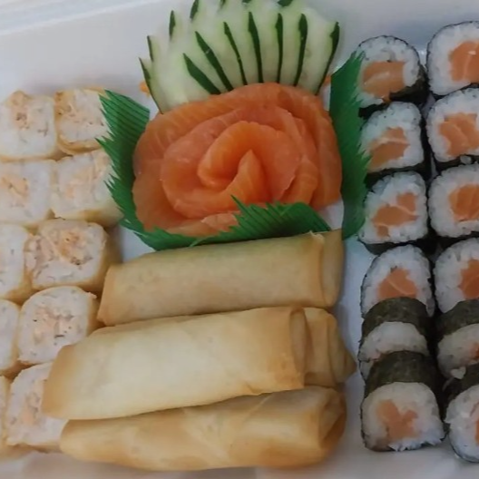 8 sashimis de salmão,10 maquimono de salmão,10 Haru hot ,4 harumaki de salmão com Cream cheeee