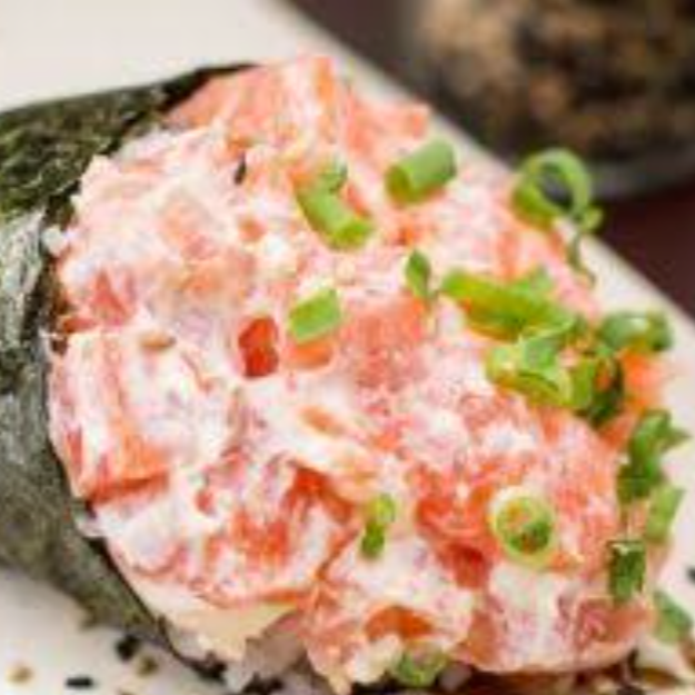 Hot feito com salmão,Cream cheese , cebolinha,arroz, finalizado com salmão picado por cima