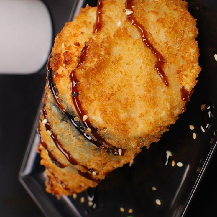Salmão envolta doo creem cheese empanado na farinha panko, frito