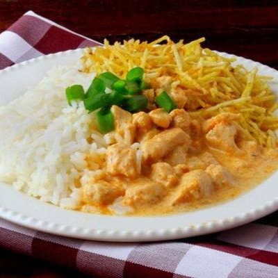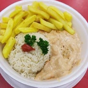 Desfrute do nosso delicioso 'Estrogonofe de frango', um prato especial da nossa categoria de petiscos. Composto por uma generosa porção de suculento frango, envolvida em um cremoso molho à base de creme de leite e extrato de tomate, meticulosamente temperado para exaltar o sabor. Acompanha batata frita ou batata palha, servida em um pote separado ou junto ao prato, de acordo com a disponibilidade do estoque. Por favor, note que não oferecemos a opção de substituição da batata. Uma refeição completa, saborosa e reconfortante, que certamente irá lhe satisfazer!