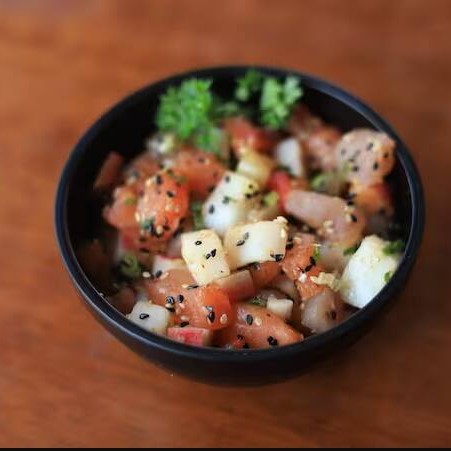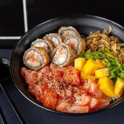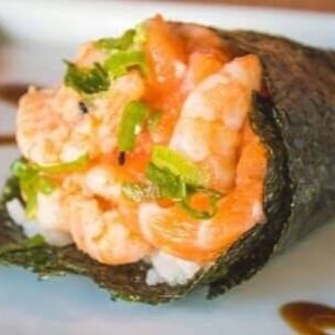 Base de arroz, atum frito, couve frita, alho poro, cream cheese e finalizado com gergelim. Não troca item de subestimou de jeito nenhum. 300 ml