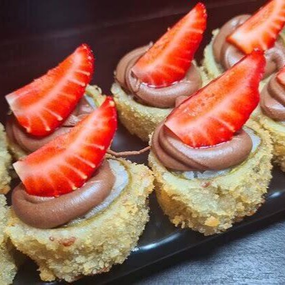 Arroz, beijinho, chocolate. Obs: morango ou floco de arroz ou granulado não opcional.