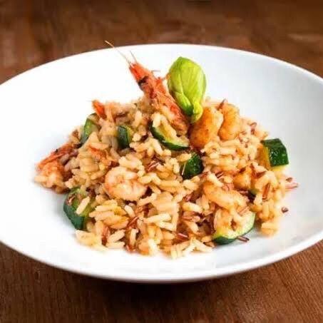Um delicioso risoto. Refogado com requeijão e proteína manteiga e sal japonês ( hondase e aginomoto), torrando o coloral com os seguintes temperos da casa adicional não obrigatório, milho, ervilha, cenoura, pimentão verde, pimentão amarelo, pimentão vermelho, cebolinha, cebola roxa, cebola branca, tomate, arroz branco, todos bem refogadinhos e um toque de cream cheese para ficar mais delicioso ainda, finalizado com um fio de azeite galo e alho torrado. S2