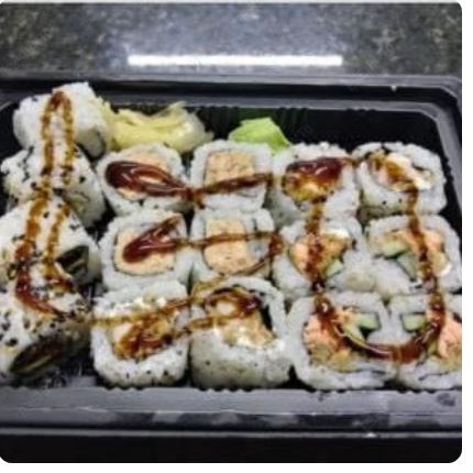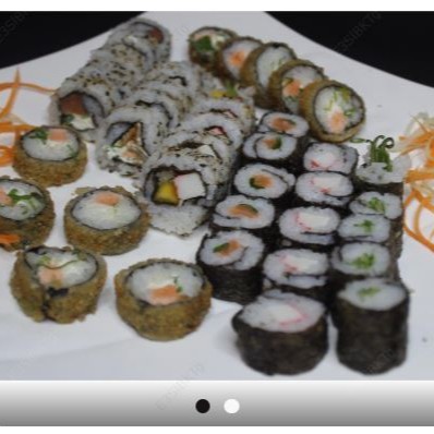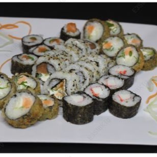 10 hot holl, 5 hossomakis de salmão, 5 urumakis skin, 5 urumakis de salmão,5 urumakis Califórnia, 5 hossomakis kani maki roll, 5 hossomakis kappa maki roll.