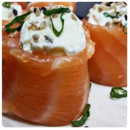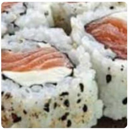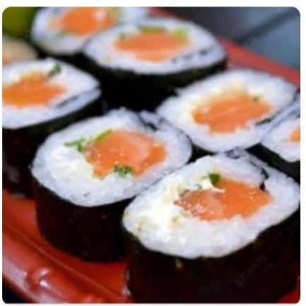 8 peças Arroz, salmão, cream cheese e cebolinha.