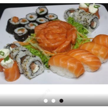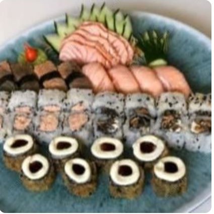 10 hot roll,5 niguiris de salmão, 5 joe de salmão, 5 hossomakis de salmão,5 urumakis skin,5 urumakis salmão, 5 urumakis de salmão,5 kani maki, 5 sashimis salmão.