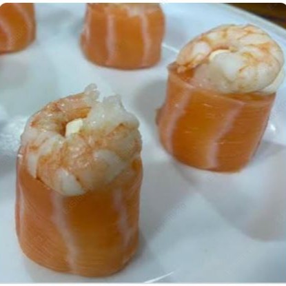 12 unidades Arroz,camarão,cream cheese,cebolinha, empanado e frito na farinha panko.
