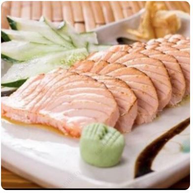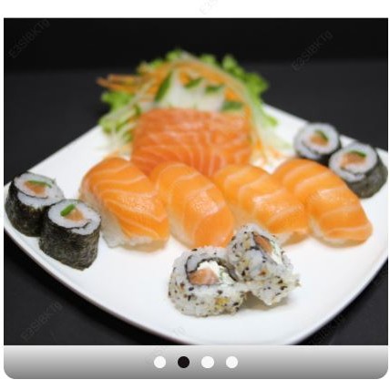 10 sashimis de salmão,10 niguiris de salmão e 10 joe de salmão.
