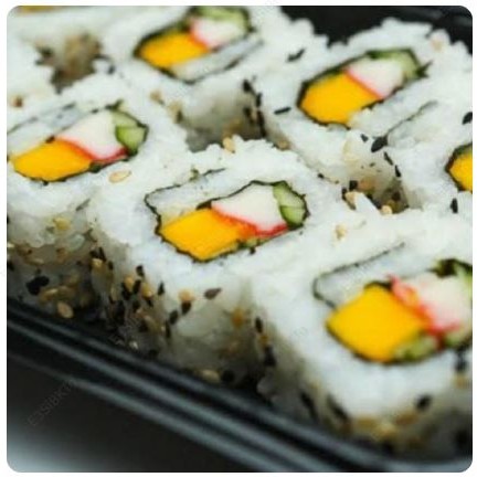 10 peças Arroz, kani, pepino japones, manga e gergelim.