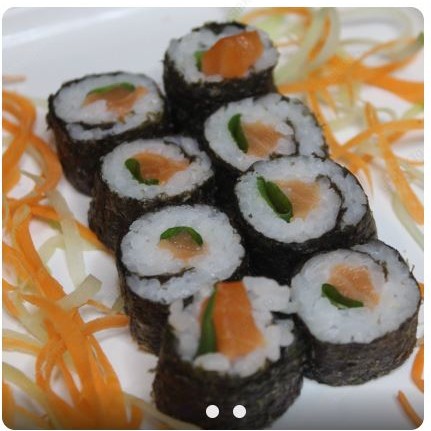 10 peças Arroz, salmão grelhado, cream cheese e cebolinha.