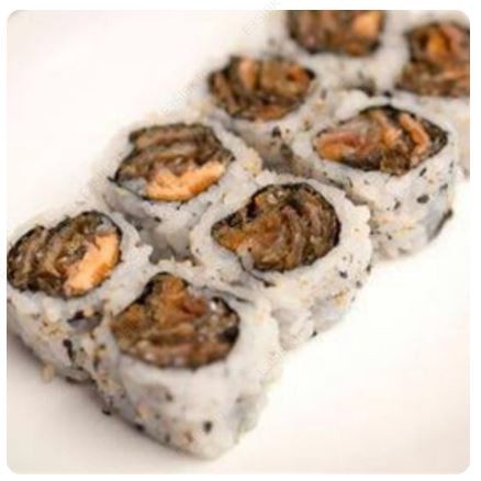 12 unidades Arroz, pele de salmão grelhado, cream cheese, cebolinha, empanado e frito na farinha panko.