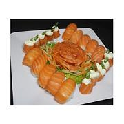 12 unidades arroz, salmão, cream cheese, cebolinha, empanado e frito na farinha panko.