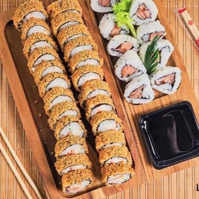 5 sashimi salmão, 4 joe, 8 sushi salmão, 8 uramaki filadelfia, 10 makimono filadelfia, 10 hot filadelfia.