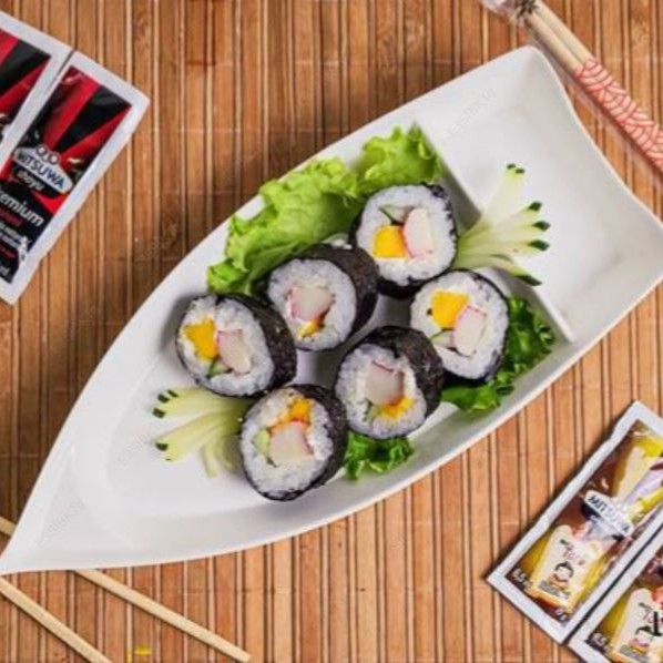 Alga, arroz, manga, pepino, kani, gergelim