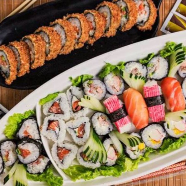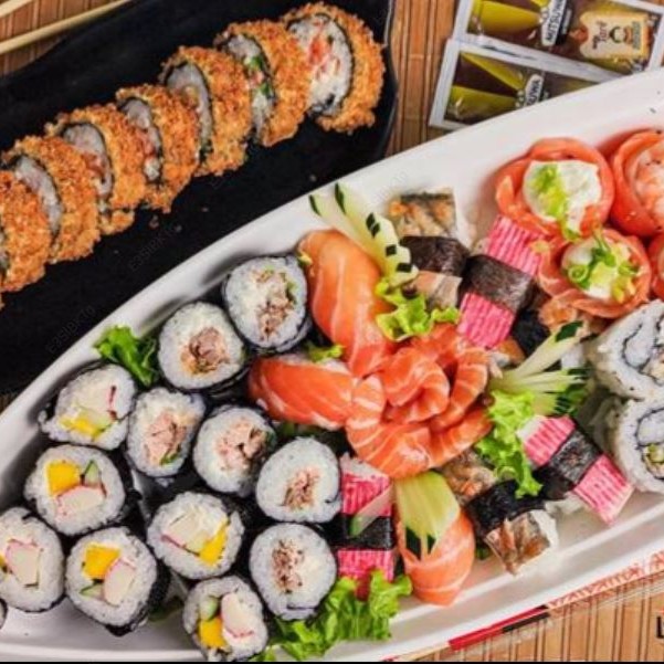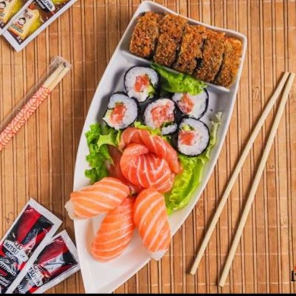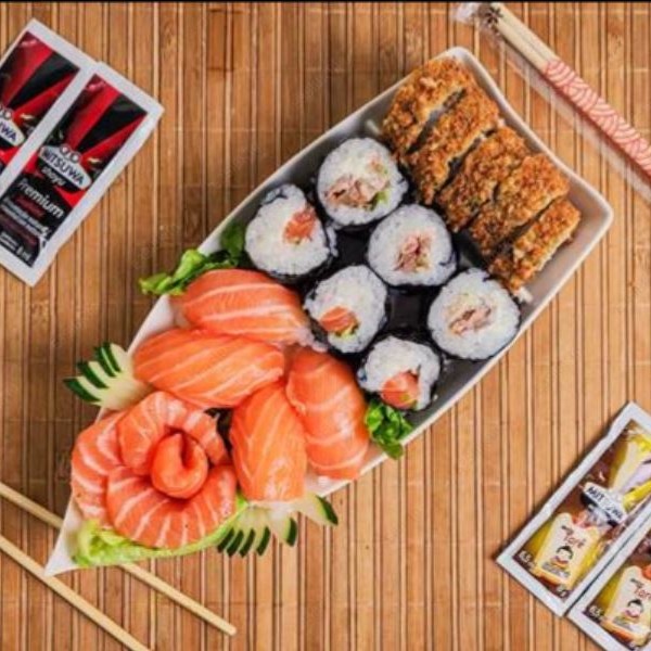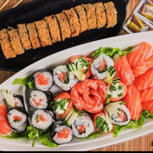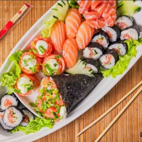 5 sashimi salmão, 4 joe, 8 sushi salmão, 8 uramaki filadelfia, 10 makimono filadelfia, 10 hot filadelfia.