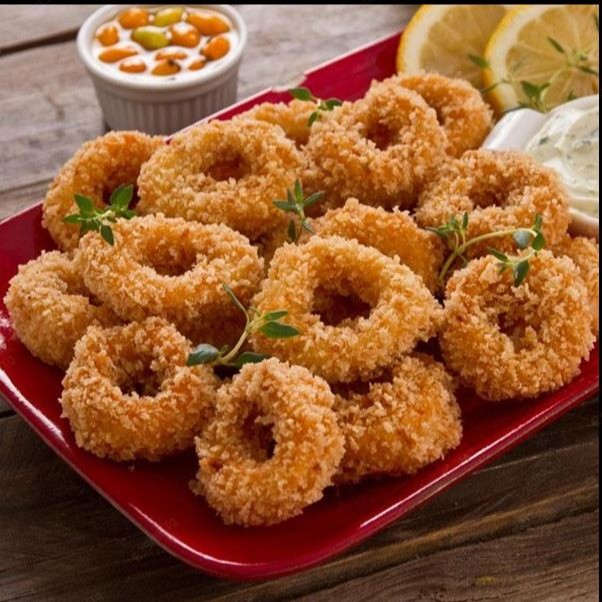 Anéis de Lula empanado na panko e frito