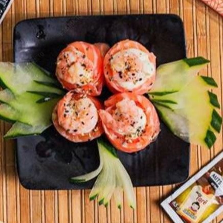 Salmão, camarão por cima, cream cheese e cebolinha, gergelim. (4 peças)
