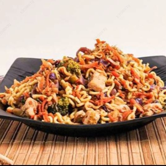 Frango, macarrão, repolho verde, repolho roxo, brócolis, cenoura.500gr