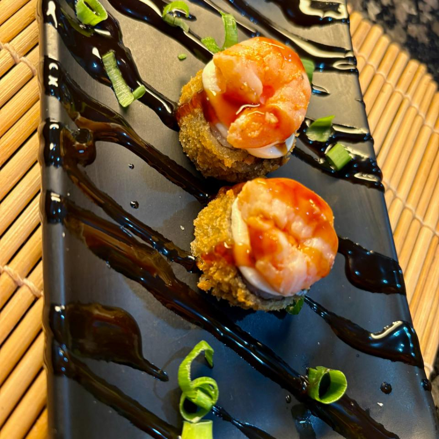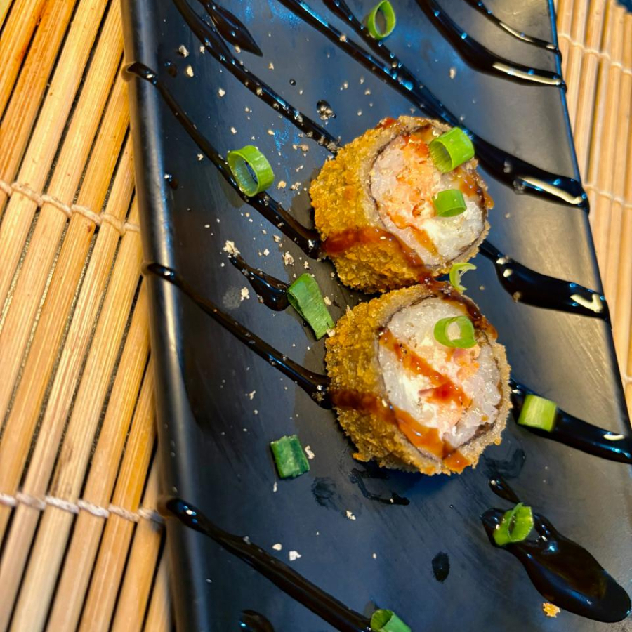 Sushi empanado e frito, recheado com camarão empanado e cream cheese.