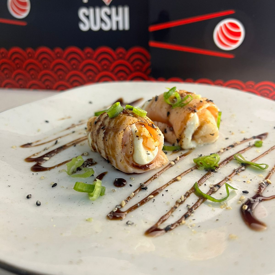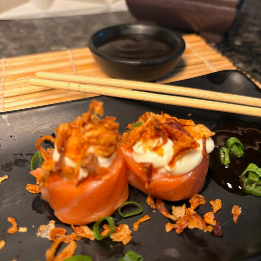 Sushi empanado e frito, recheado com salmão e cream cheese cremoso.
