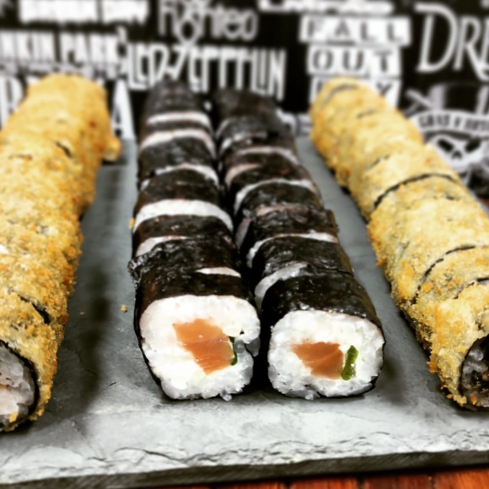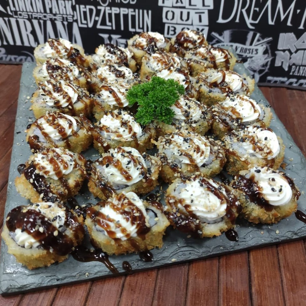 🔥🎸 O solo de guitarra dos temakis! Salmão suculento, Filadélfia cremoso e uma camada crocante que chega estralando como um riff pesado. Cada mordida é um impacto: textura, sabor e atitude num combo que só o Sushi Rock entrega. Um hot poderoso, feito pra quem curte comer com intensidade e estilo! 🤘🍣