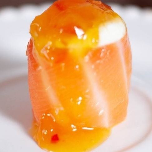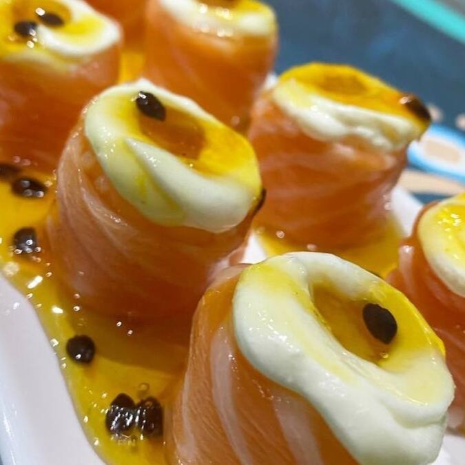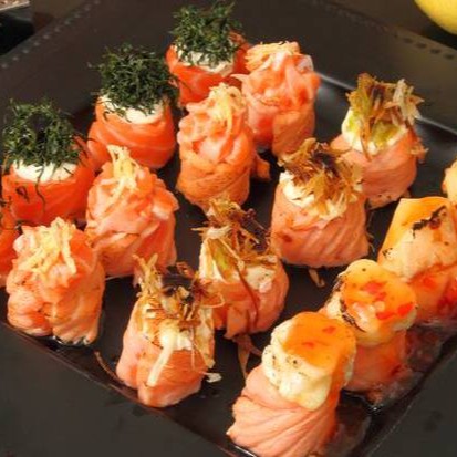 Salmão enrolado com cream cheese