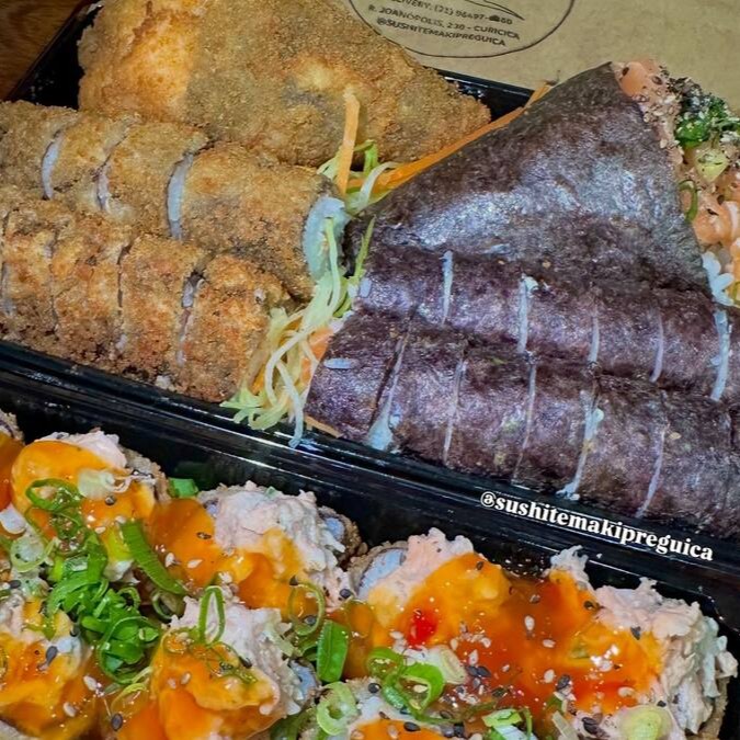 02 sushi de atum + 02 enrolados de atum e cream cheese + 04 enrolados de salmão, cream cheese e alho poró + 2 joy de atum, cream cheese e cebolinha