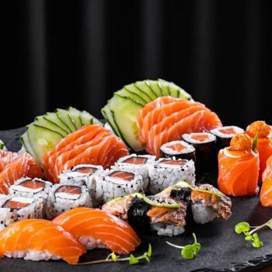 12 lindas fatias de atun e salmão