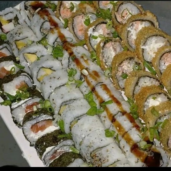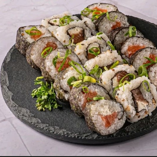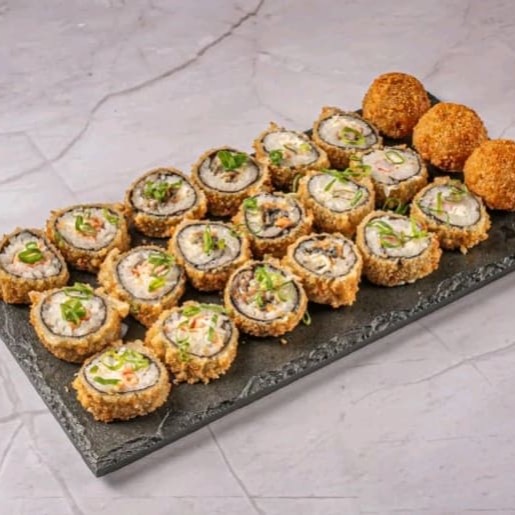 10 uramakis skin, 5 sushi skin , 5 hots atun, 5 sushi salmão tost