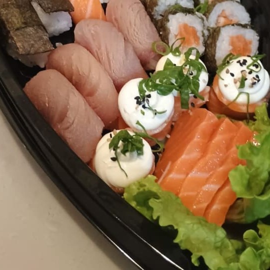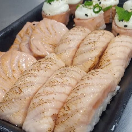 10 sashimi salmão 8 sushi salmão 2 sushi skin 6 fhila salmão 6 fhila kani