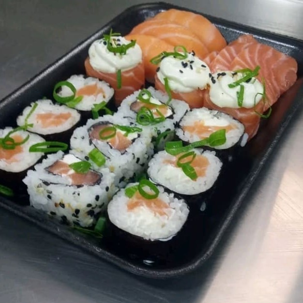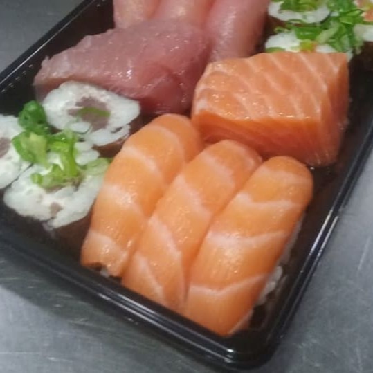 3 sashimi salmão 2 sashimi atum 2 sushi de salmão 2 sushi de atim 1 sushi skin 4 rolo Filadélfia 2 tekka maki