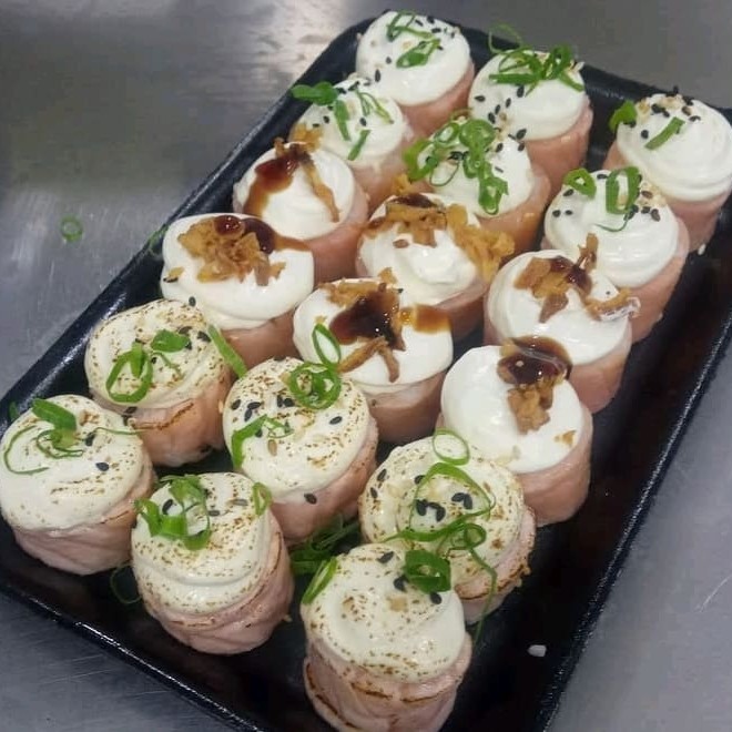 Aprecie 10 unidades de nosso suntuoso Sashimi Tosta com Geleia de Maracujá. Esse prato refinado é feito com fatias de puro salmão, delicadamente tostadas, realçando seu sabor fresco e irresistível. Cada pedaço é complementado por uma geleia de maracujá, uma verdadeira delícia que confere um toque agridoce ao prato, criando uma combinação de sabores que irá surpreender e encantar seu paladar. Uma experiência gastronômica única, perfeita para os amantes de sashimi.