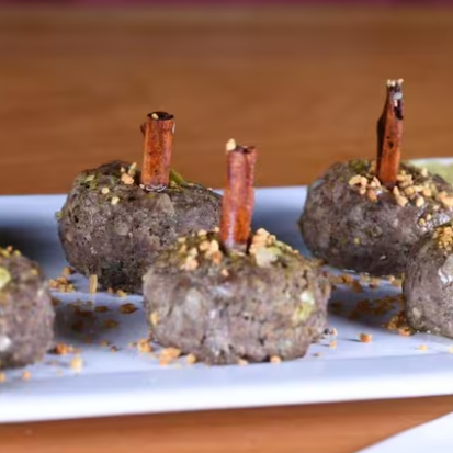 porção de mini kafta temperada no pau de canela ( 06 Unidades)