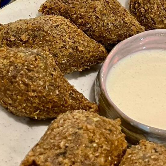 6 Unidades de mini esfihas. (carne, queijo, queijo com cebola, e ricota com espinafre)