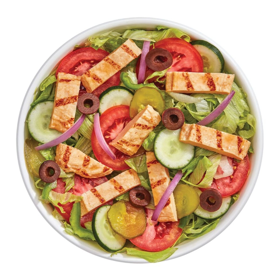 Escolha seu sanduíche com sua proteína favorita (Steak Churrasco ou Frango ou Frango Empanado), escolha até 2 vegetais e 2 molhos de sua preferência. Imagem Ilustrativa.