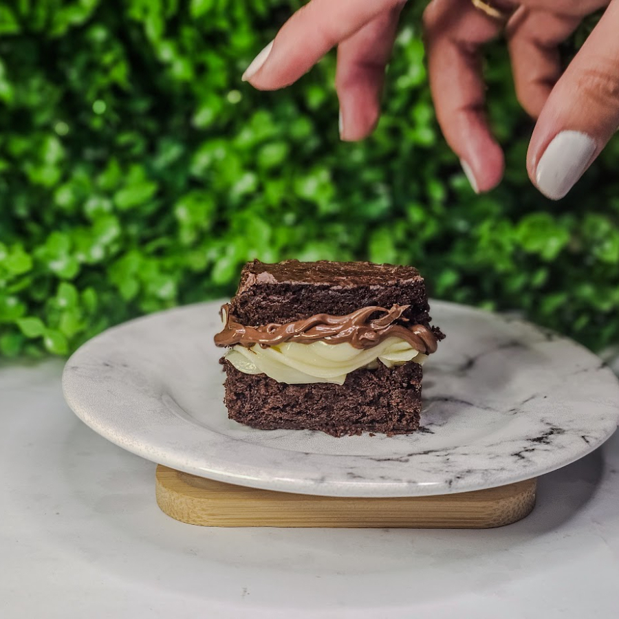 Brownie recheado generosamente com brigadeiro de ninho e nutella. (Aprox 65g)