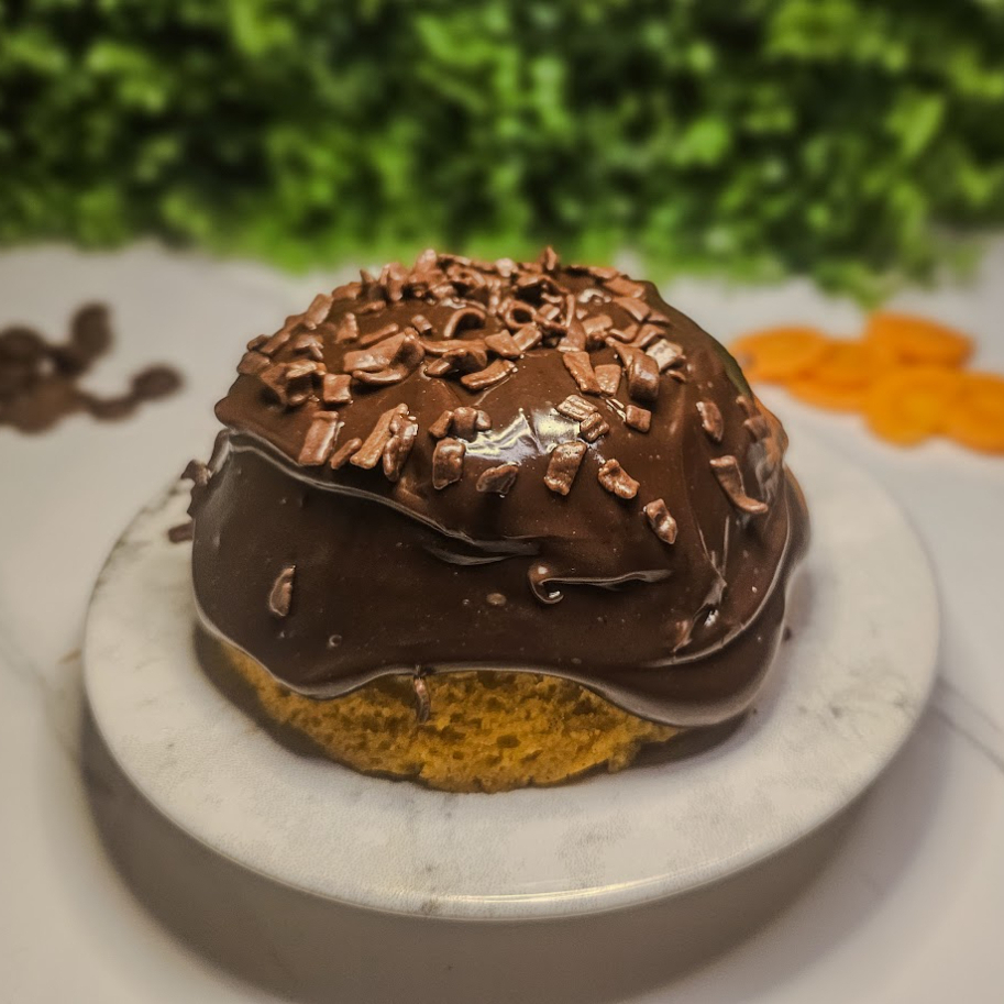 Massa fofinha de cenoura com cobertura cremosa de chocolate. O sabor caseiro que abraça e faz lembrar aquele bolo feito com amor! (Aprox. 300g)