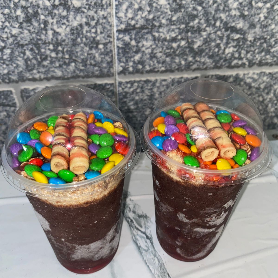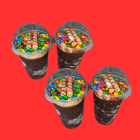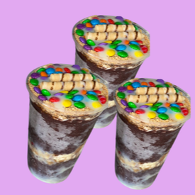 Acompanha: Leite condensado, leite em pó, ovomaltine, paçoça, amendoim, M&M, Bombom Ouro branco e canudinho.