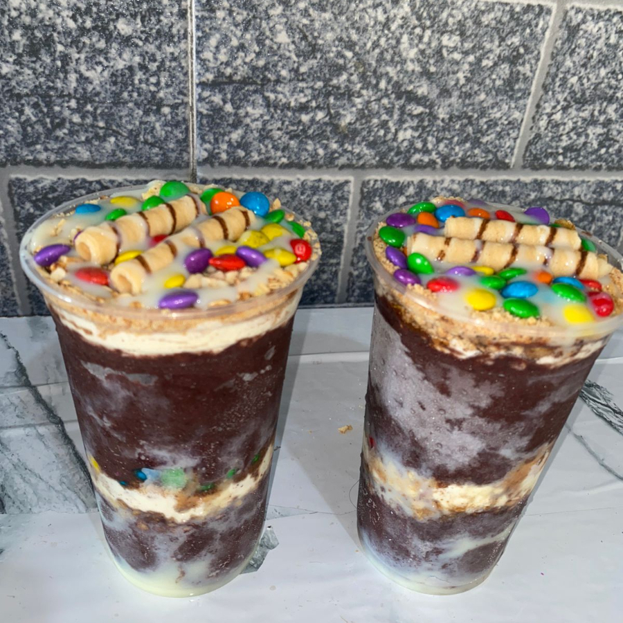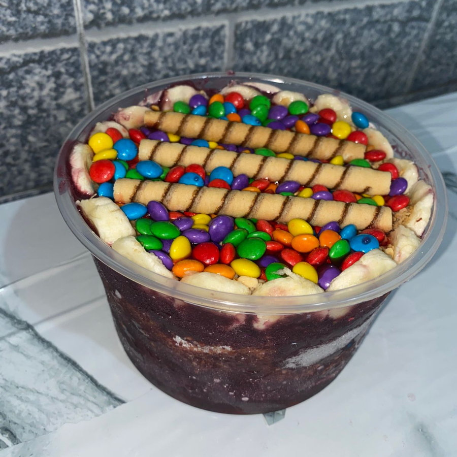 Deliciosos açaís meio a meio com os seguintes acompanhamentos: Leite em pó, leite condensado, granola, amendoim, paçoca, biscoito canudinho e confeito M&M. *caso deseje retirar algum item, descreva no campo de observação.