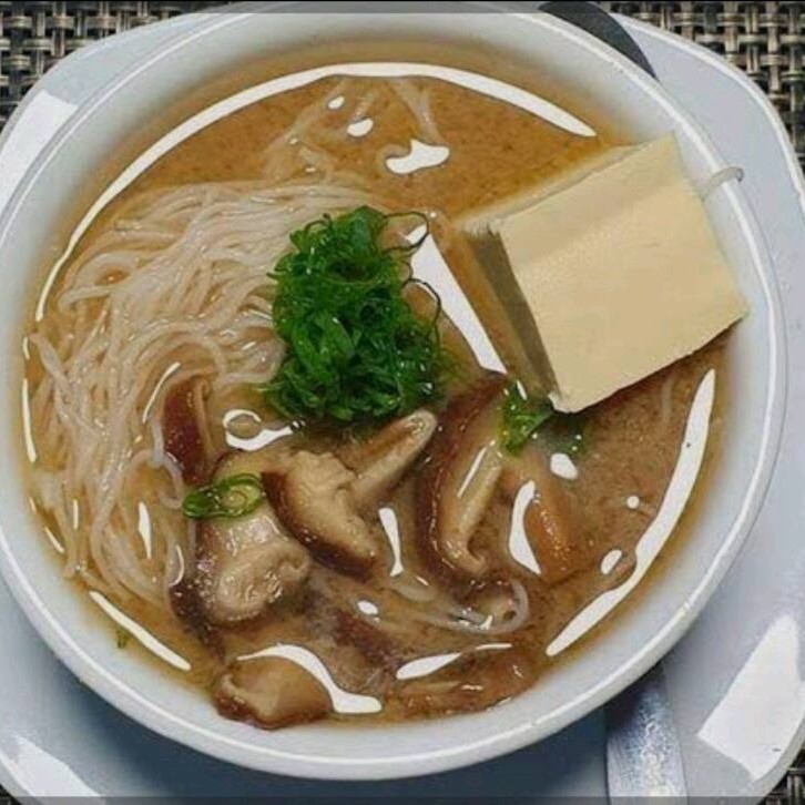 Nudos + shitaki + tofu + caldo abase de soja e peixe finalizado com cebolinha
