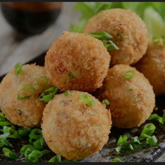 Salmão, requeijão, cebolinha e alho poró, tempero do chefe, empanado e frito