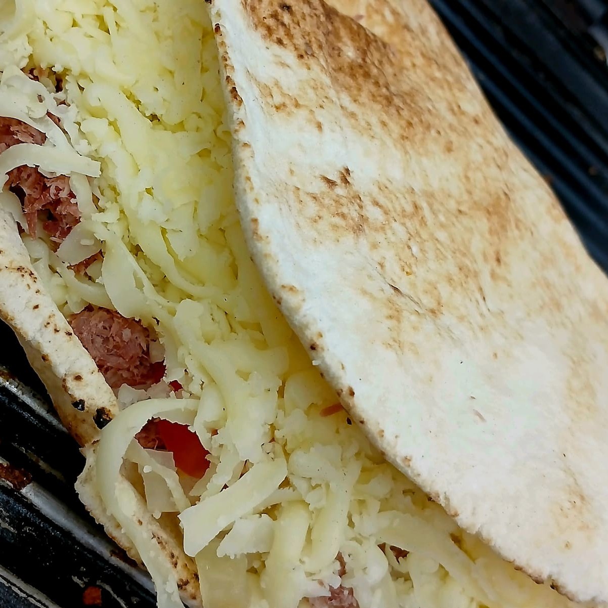 Pão Arabe De Carne Seca C Queijo,tomate,cebola E Orégano