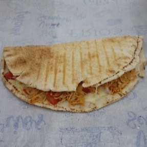 Pão arabe c/ frango desfiado , queijo,tomate,cebola e orégano