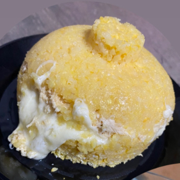 Uma combinaçao de Cuscuz manteiga e frango c queijo