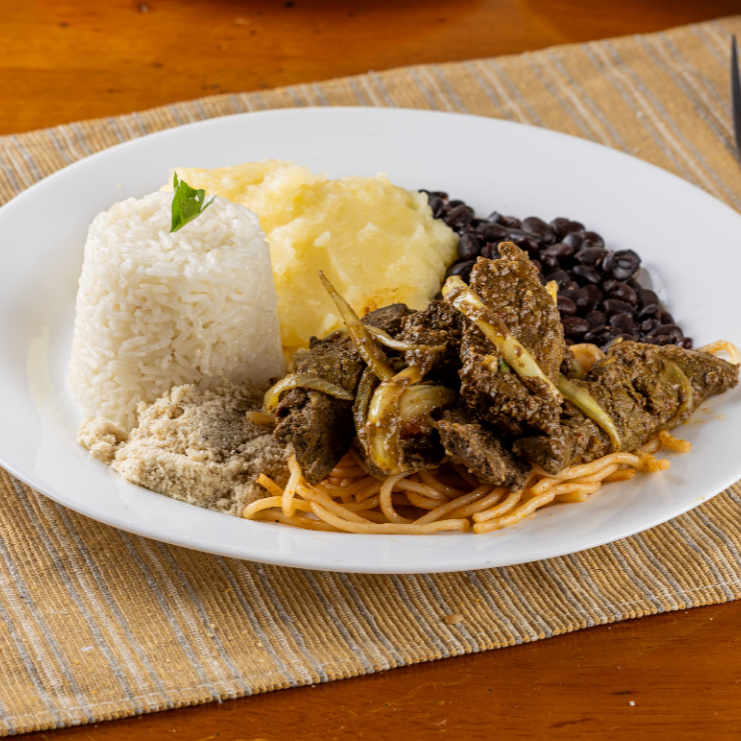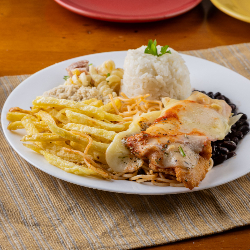 Arroz, Feijão, Macarrão Farofa + 1 acompanhamento