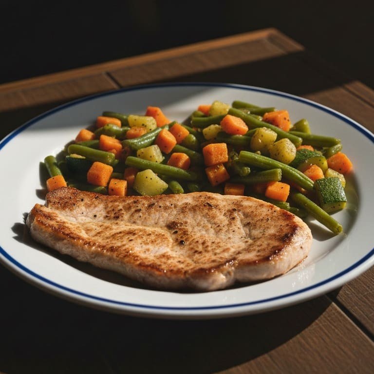 Filé de Frango Grelhado acompanhado de Legumes (cenoura, abobrinha e vagem) salteados na manteiga