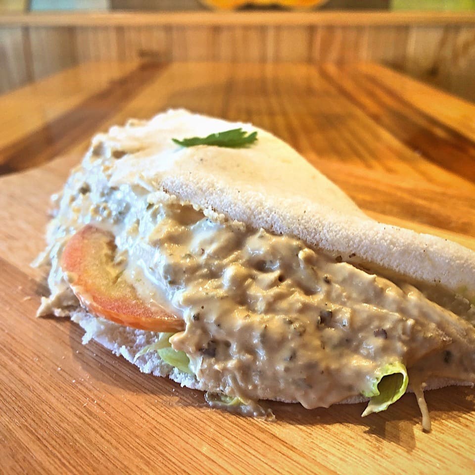 Pasta de filé de peito de frango desfiado, mix de alface americana, crespa e rodelas de tomate.