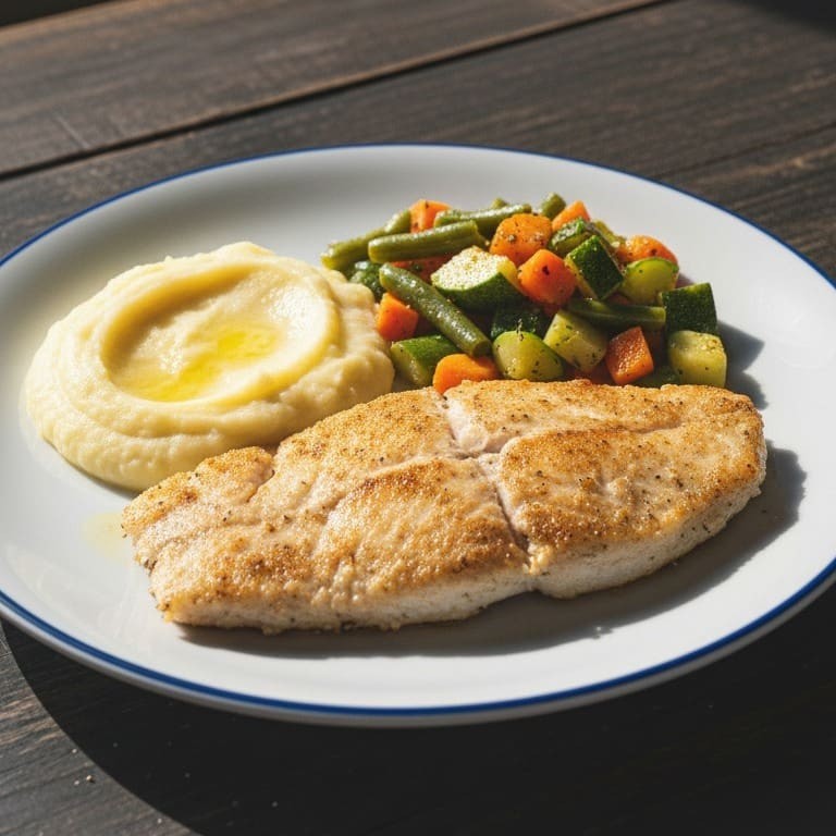 Delicioso Filé de Tilápia com legumes variados (cenoura, abobrinha e vagem) salteados na manteiga.