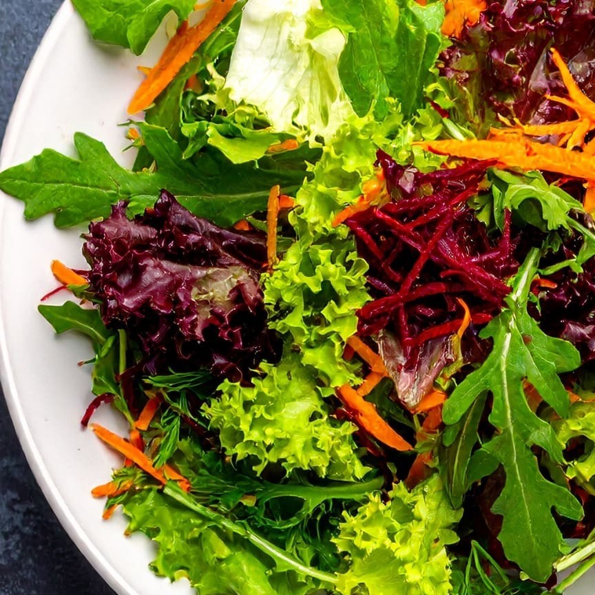 Mix de folhas frescas acompanhadas de cenoura e beterraba ralada, regadas com delicioso molho pesto de manjericão. Adicione uma proteína e turbine sua salada!